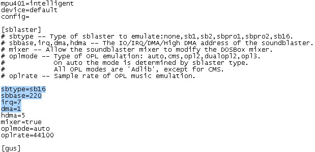 'Creative Labs Sound Blaster or 100% compatible' unter 'DOSBox'