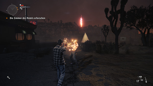 Direkt zu Beginnen fällt natürlich die komplett neue Optik ins Auge, die den Spieler in den amerikanischen Bundesstaat Arizona führt. Gewichen sind die grauen und farblosen Töne des Hauptspiels einer leicht rötlichen Optik. Definitiv eine sehr gute Designentscheidung, wie ich finde, denn nach Alans erstem Trip und den beiden DLCs könnte man sich schon an der Grafik sattgesehen haben. Die ist zwar noch immer toll, bot aber auf Dauer nur wenig Abwechslung für das verwöhnte Auge. Eine weitere Neuerung sind die Zwischensequenzen: Die sind nun nicht mehr vorgerendert, sondern mit echten Schauspielern abgedreht. Im Zusammenspiel mit der neuen Optik gibt das 'Alan Wake's American Nightmare' einen moderneren und auch frischeren Look. Ansonsten wird die Geschichte aber auch zusätzlich noch mit Ingame-Zwischenseqenzen weitergesponnen und man kann dort sogar entscheiden, wie viel oder wenig man sich mit den anderen Charakteren unterhalten möchte. Während die erste Unterhaltung selbstablaufend ist, kann man im Nachhinein weitere Gesprächsthemen ansprechen. Diese sind jedoch komplett optional und bieten ein paar zusätzliche aber nicht entscheidende Hintergründe zum Geschehen. Schade empfinden wir es allerdings, dass sich 'Remedy' bei der Lokaliserungen lediglich auf Untertitel stützt - deutsche Sprachausgabe gibt es, im Gegensatz zum Vorgänger, daher leider nicht.